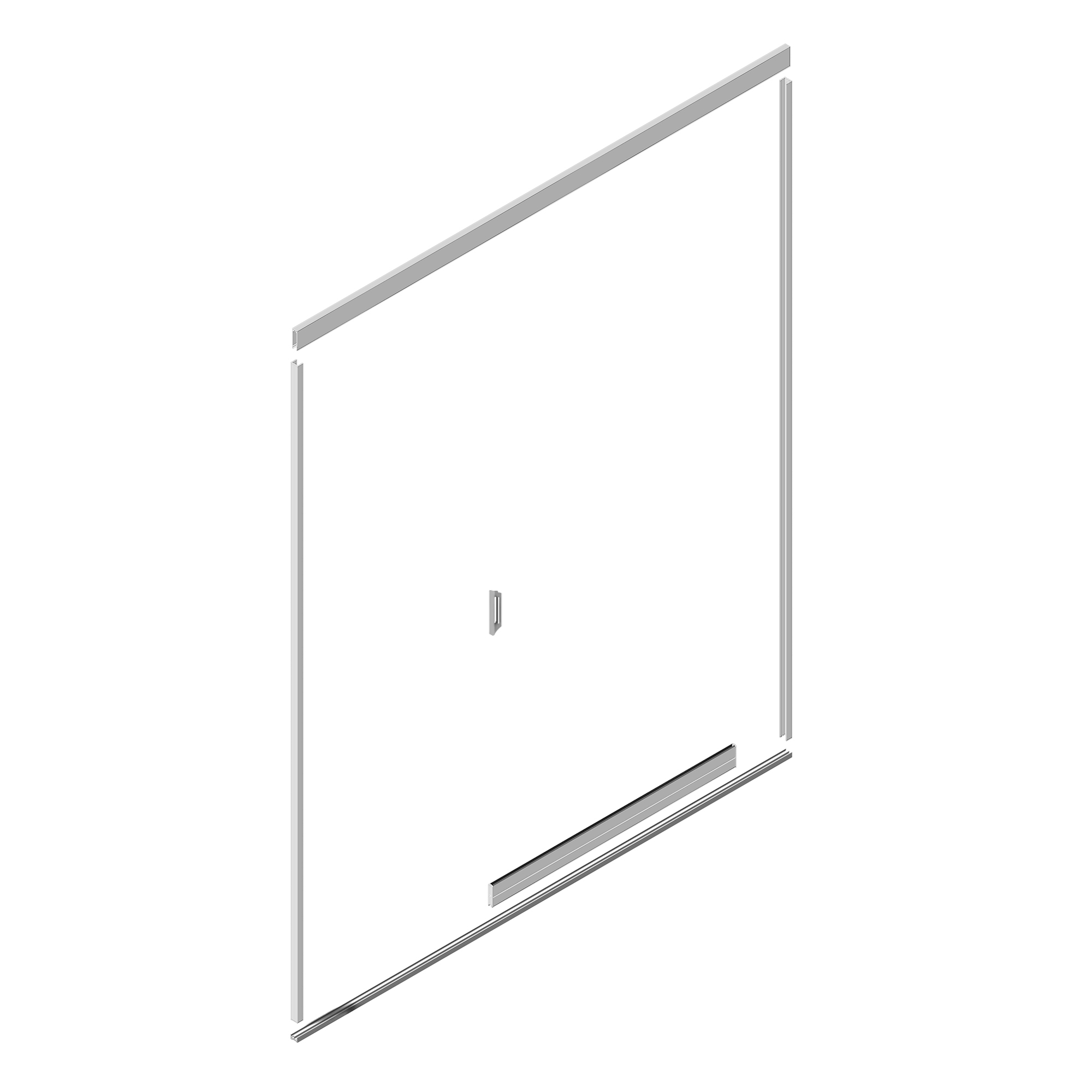 Bausatz beinhaltet: Schienensystem, Seitenprofile, Glasschiebetüre, Türgriffe, Schraubensatz