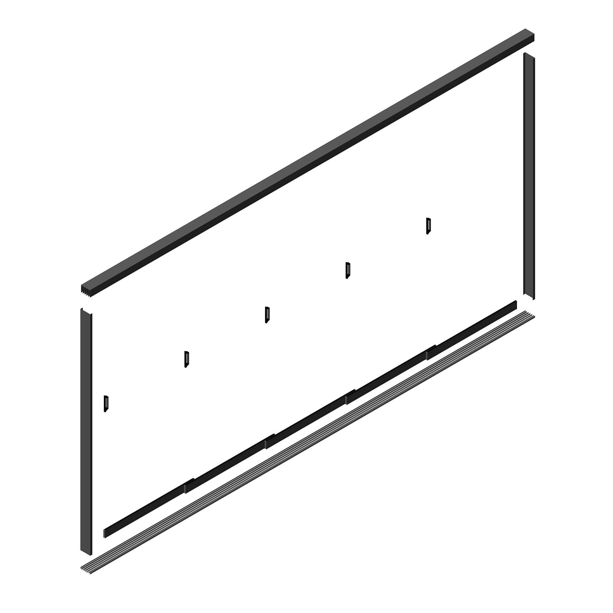 Bausatz beinhaltet: Schienensystem, Seitenprofile, Glasschiebetüre, Türgriffe, Schraubensatz
