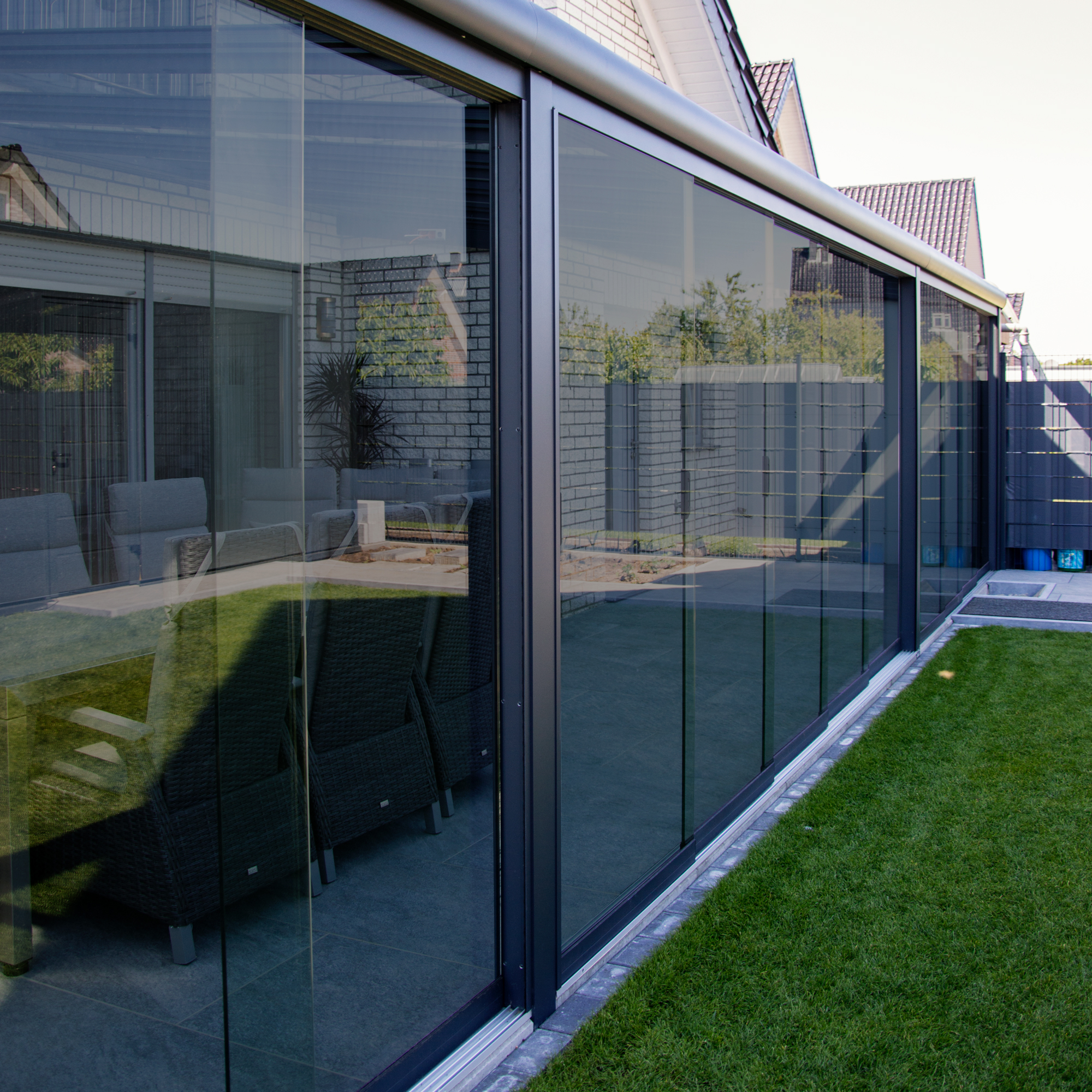 Entspannen Sie sich bei jedem Wetter auf Ihrer Terrasse mit den Glasschiebewänden von Dreamgarden und genießen Sie die Aussicht durch beständiges Sicherheitsglas. Die hochwertig produzierten Schiebewände schützen optimal vor Kälte, Wind und Niederschlag und ermöglichen die Nutzung Ihrer Terrasse rund um das ganze Jahr.