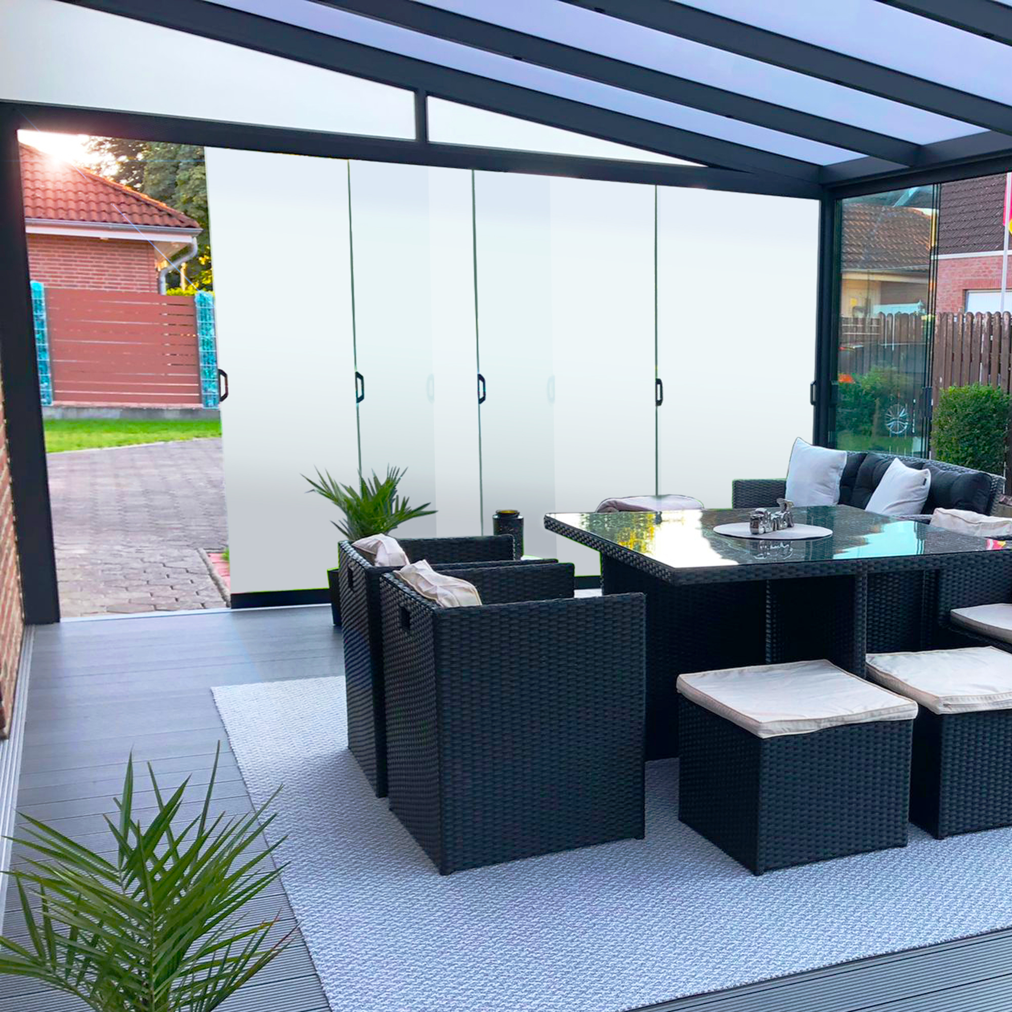 Entspannen Sie sich bei jedem Wetter auf Ihrer Terrasse mit den Glasschiebewänden von Dreamgarden und genießen Sie die Aussicht durch beständiges Sicherheitsglas. Die hochwertig produzierten Schiebewände schützen optimal vor Kälte, Wind und Niederschlag und ermöglichen die Nutzung Ihrer Terrasse rund um das ganze Jahr.